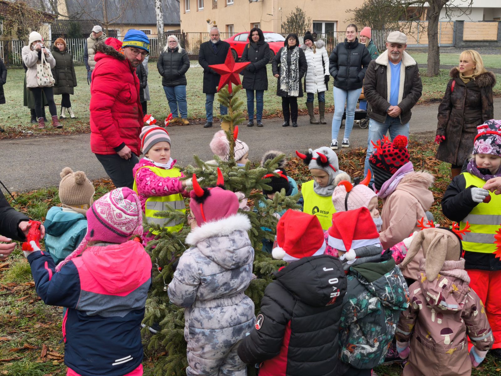 U vánočního stromečku v Soběchlebech u kapličky se hrálo a zpívalo s dětmi z MŠ Sluníčko.