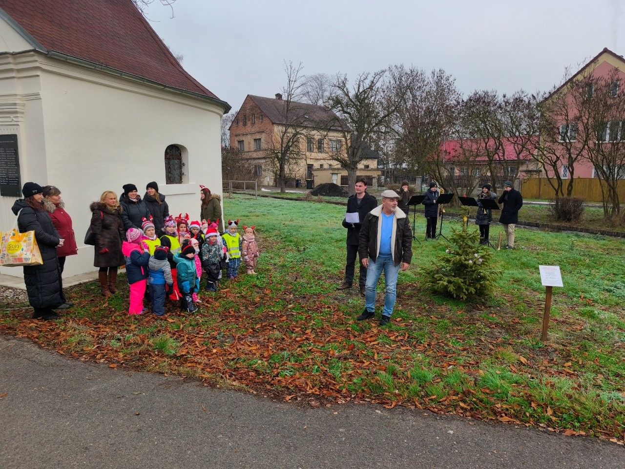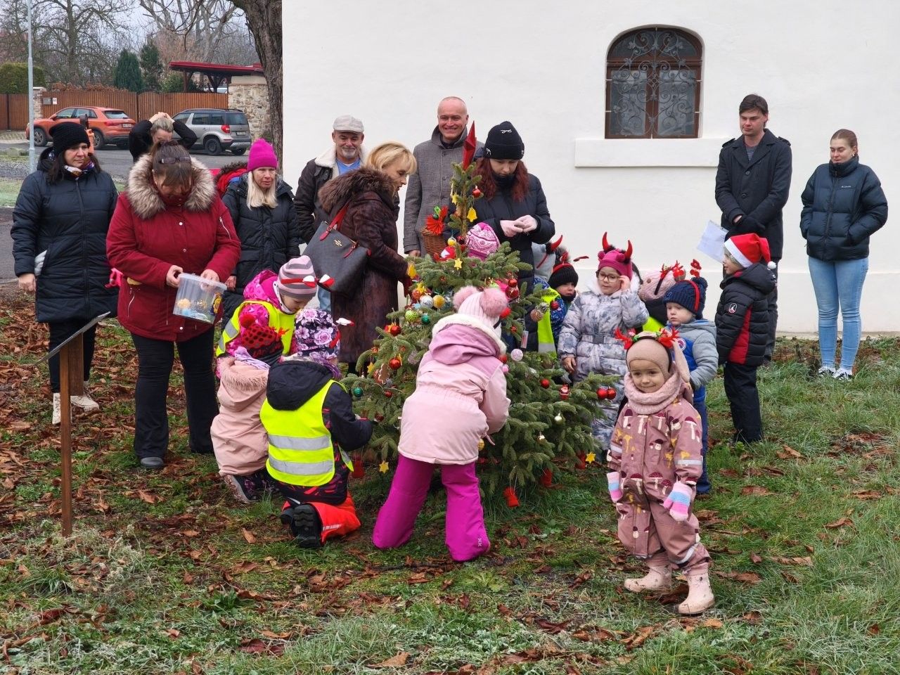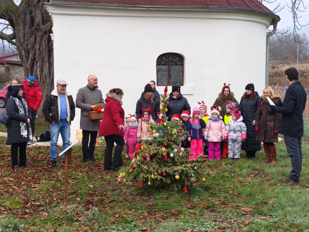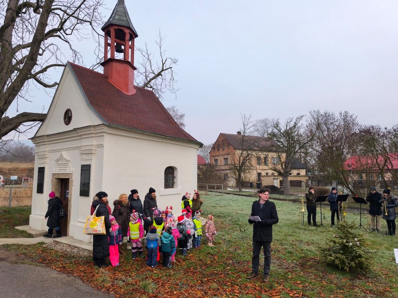 U vánočního stromečku v Soběchlebech u kapličky se hrálo a zpívalo s dětmi z MŠ Sluníčko.